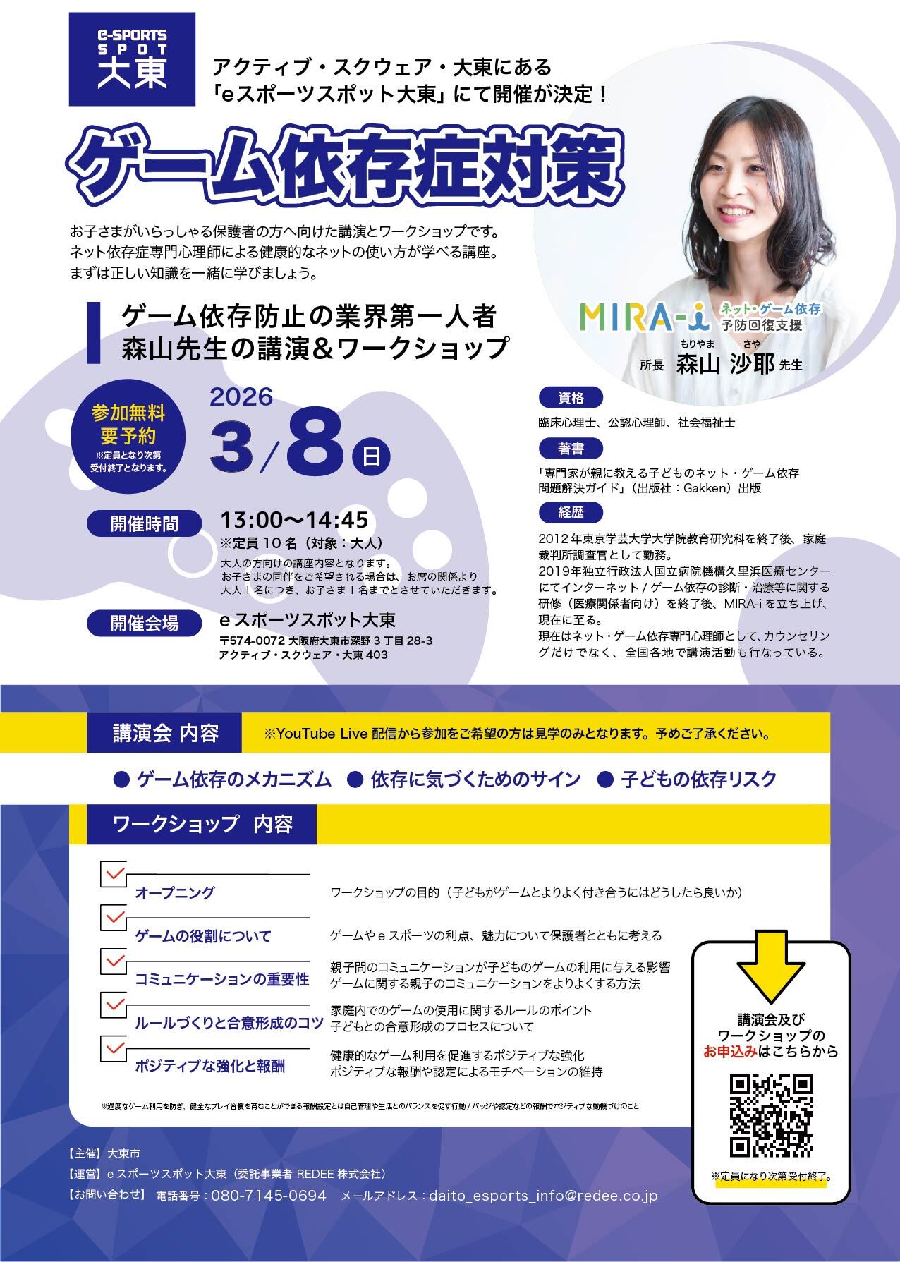 3月8日開催! ゲーム依存防止の業界第一人者 森山先生の講演&ワークショップ